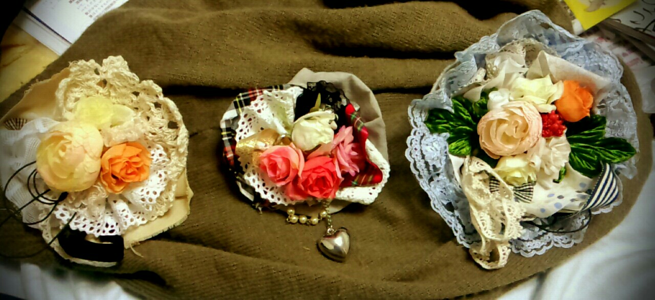 造花コサージュ作り始めて3つばかり。悪化してるような気がする。ううん。
